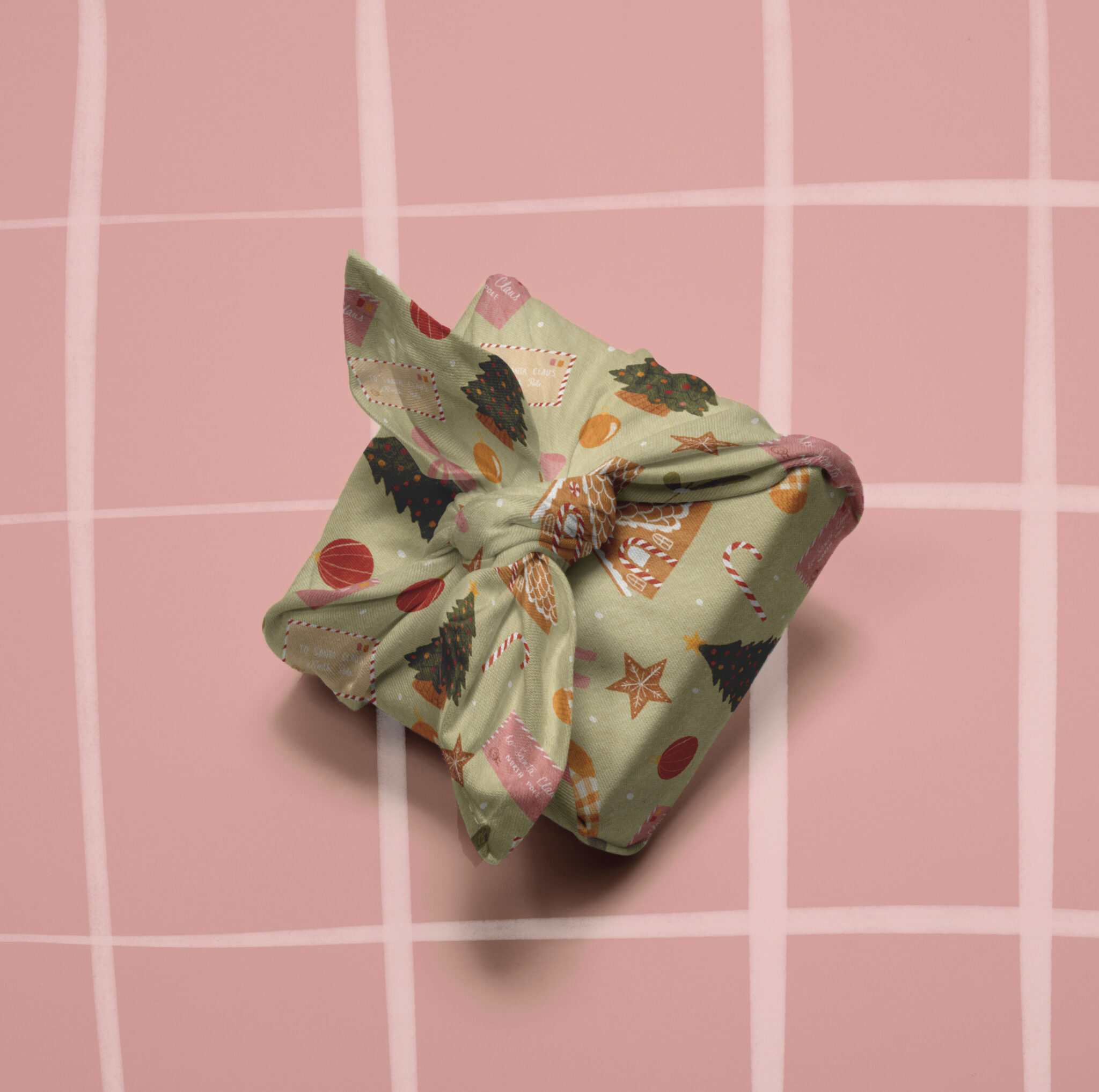 Réalisation d’un joli motif coloré de Noël, à utiliser pour des emballages cadeaux comme des furoshikis ou du papier classique.