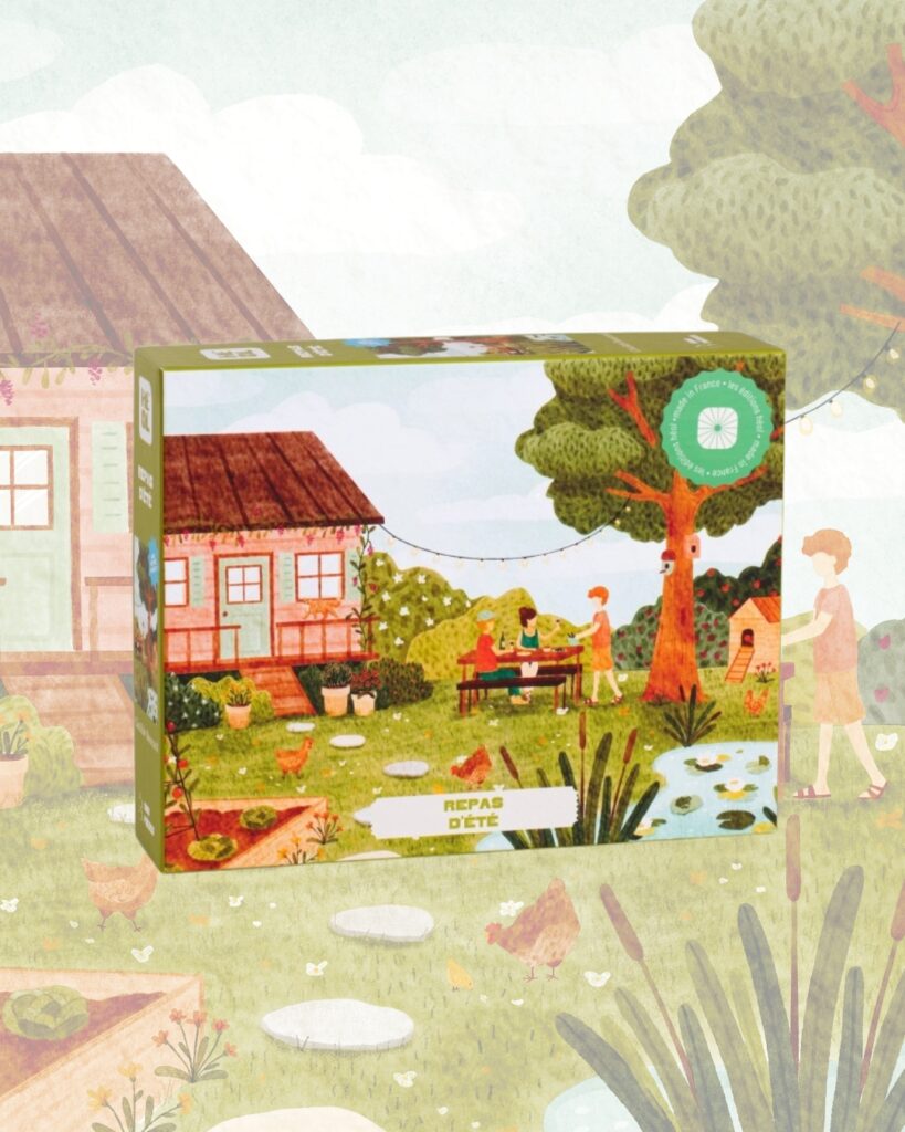 Repas d’été – Les Editions Heol Collaboration avec Les Editions Heol pour la réalisation d’un puzzle 1000 pièces : « e puzzle vous invite à prolonger l’été. Réalisée à l’aquarelle, cette scène vous embarque dans ce doux jardin avec un potager, des poules, des jolies plantes et un bon repas en plein air. » Client : Les Editions Heol Date : Février 2024 Catégorie similaire : Repas d’été – Les Editions HeolEditionThe Urban Explorers Collection – Paper and CitiesEditionMes Rituels Japonais – Editions LeducEditionBalade en forêt – Trevell PuzzleEditionThe Urban Explorers Collection – Paper and CitiesEditionCafé Botanique – Trevell PuzzleEditionCarnets de Voyage – Vio VadrouilleEdition